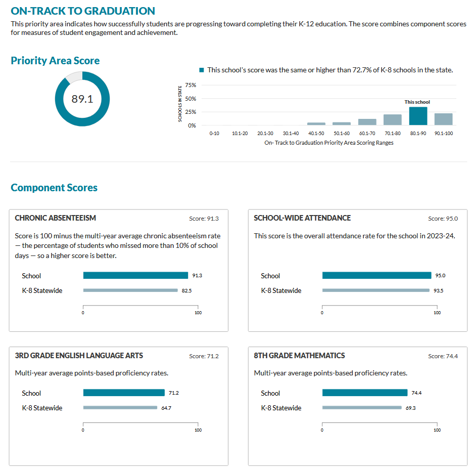 The Department of Public Instruction (DPI) produces report cards for every publicly funded and some private schools and district in Wisconsin. These report cards include data on multiple indicators for multiple years across four Priority Areas (Achievement, Growth, Target Group Outcomes, and On-track to Graduation).